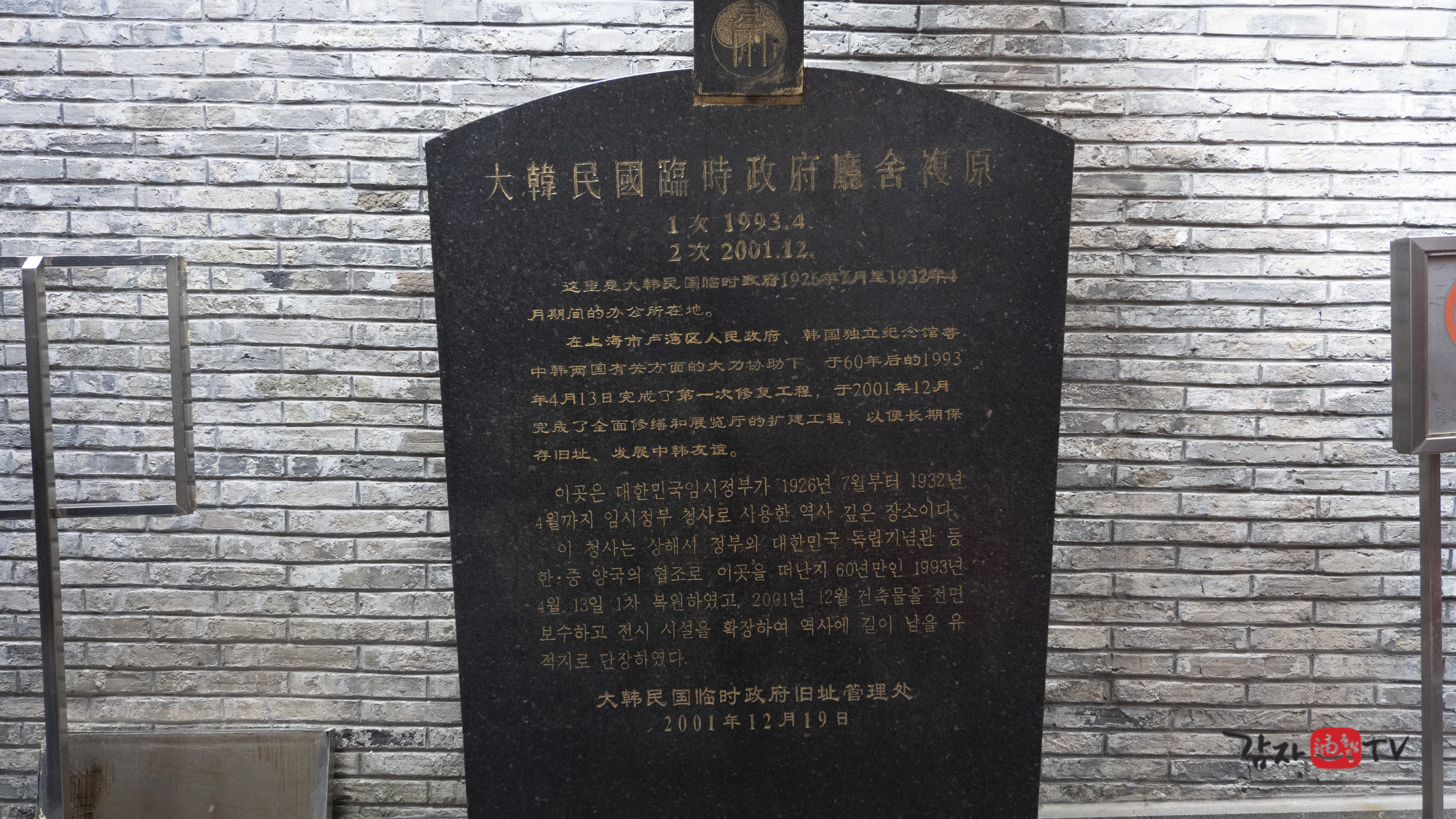‘대한민국임시정부 구지관리처’는 1993년 4월 13일 대한민국임시정부 건물 복구 공사 완공기념식을 거행하고