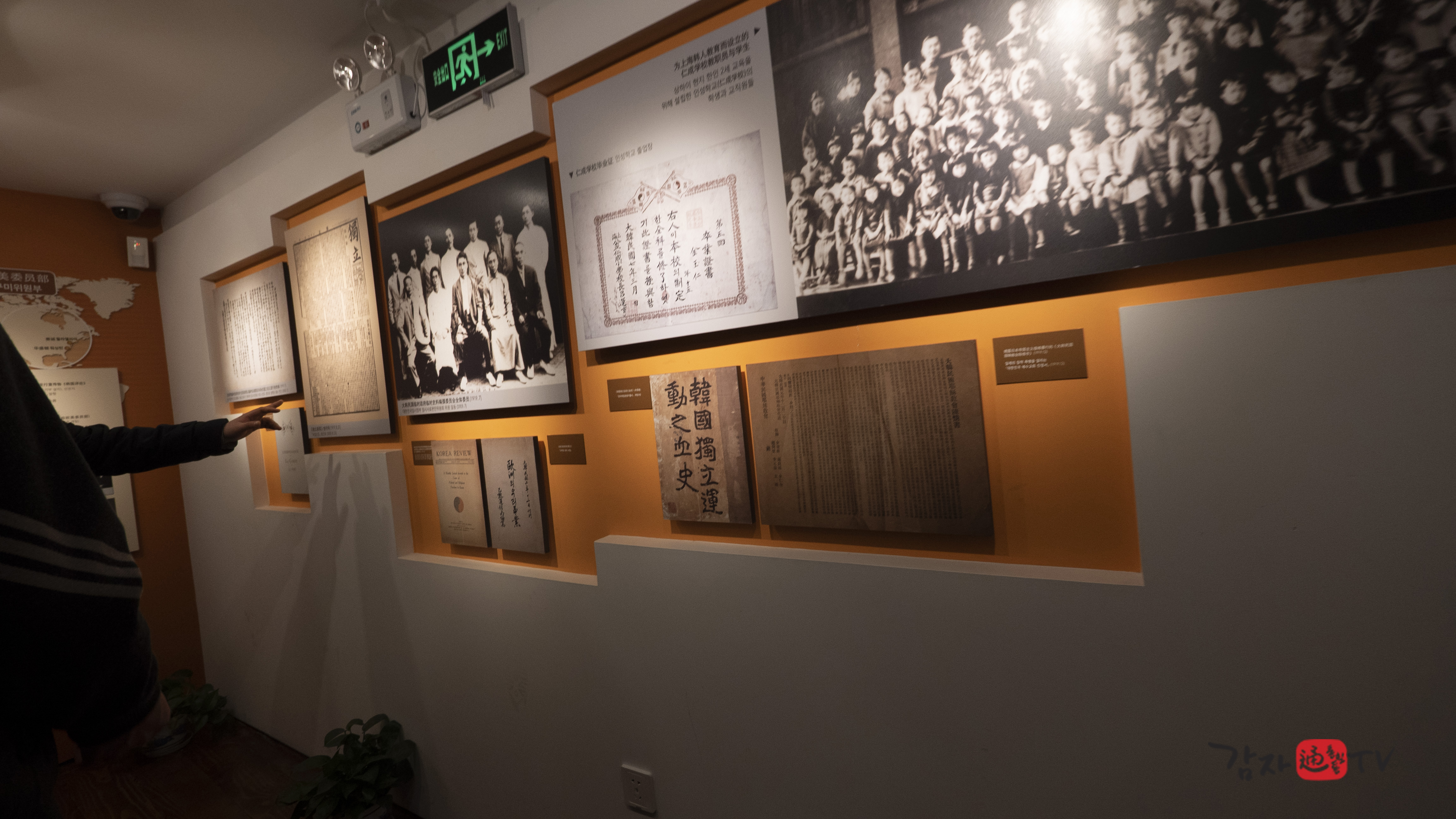 제1전시실 입구에는 대한민국임시정부가 1919년 탄생할 때부터 1945년 해방될 때까지의 역사가 소개되어 있다.