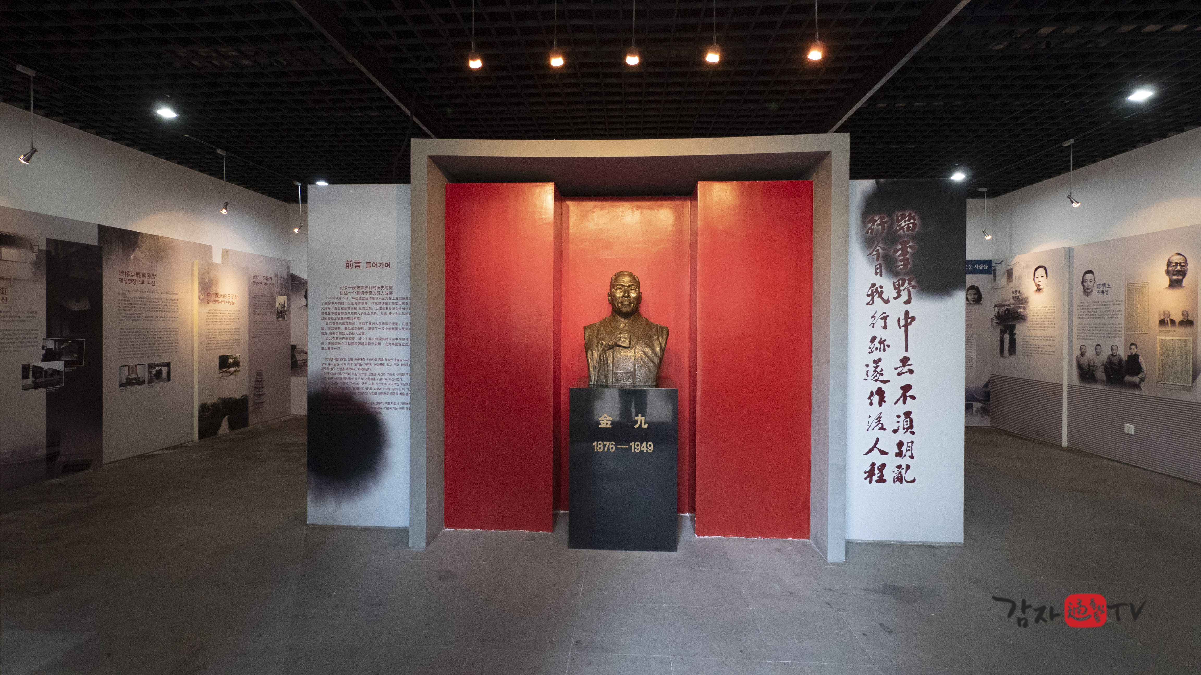 건물 입구에는 ‘대한민국 김구선생 항일시기 피난처’라고 쓰여 있는 현판이 걸려 있다.