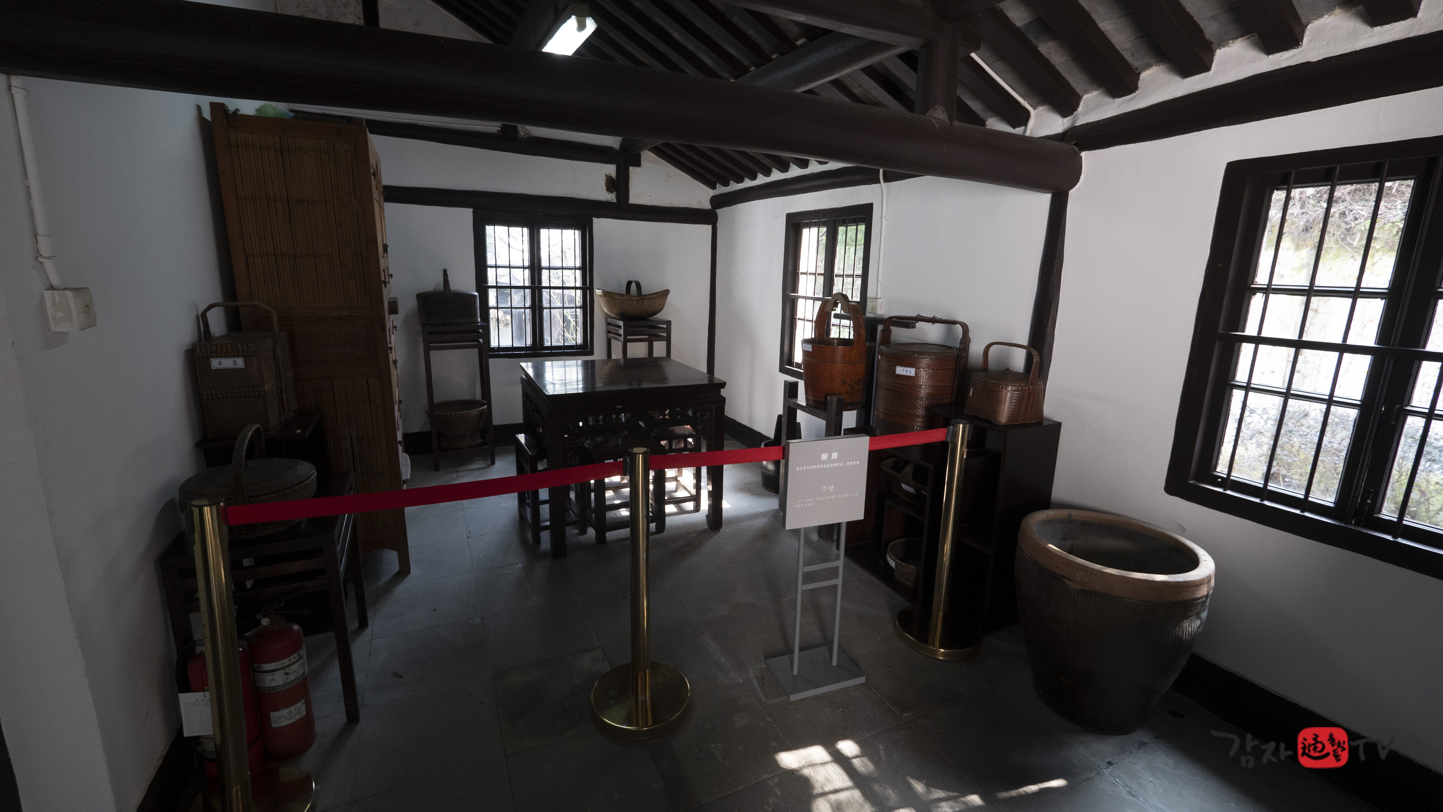 2001년 가을 가흥시는 재청별장 옆에 ‘김구 전시관’을 신축하고, 독립기념관의 지원을 받아 김구 관련 사진 및 문헌 자료들을 전시하였다. 전시관의 총 면적은 120㎡이며, 전시는 ‘김구의 독립운동’, ‘남북호 피난 시기의 생활’, ‘한중우의’라는 세 개의 주제로 구성되어 있다. 입구에는 ‘재청별장 김구피난처 : 김구선생 피난처’라고 중문과 한글로 쓰여진 표지석이 세워져 있다.