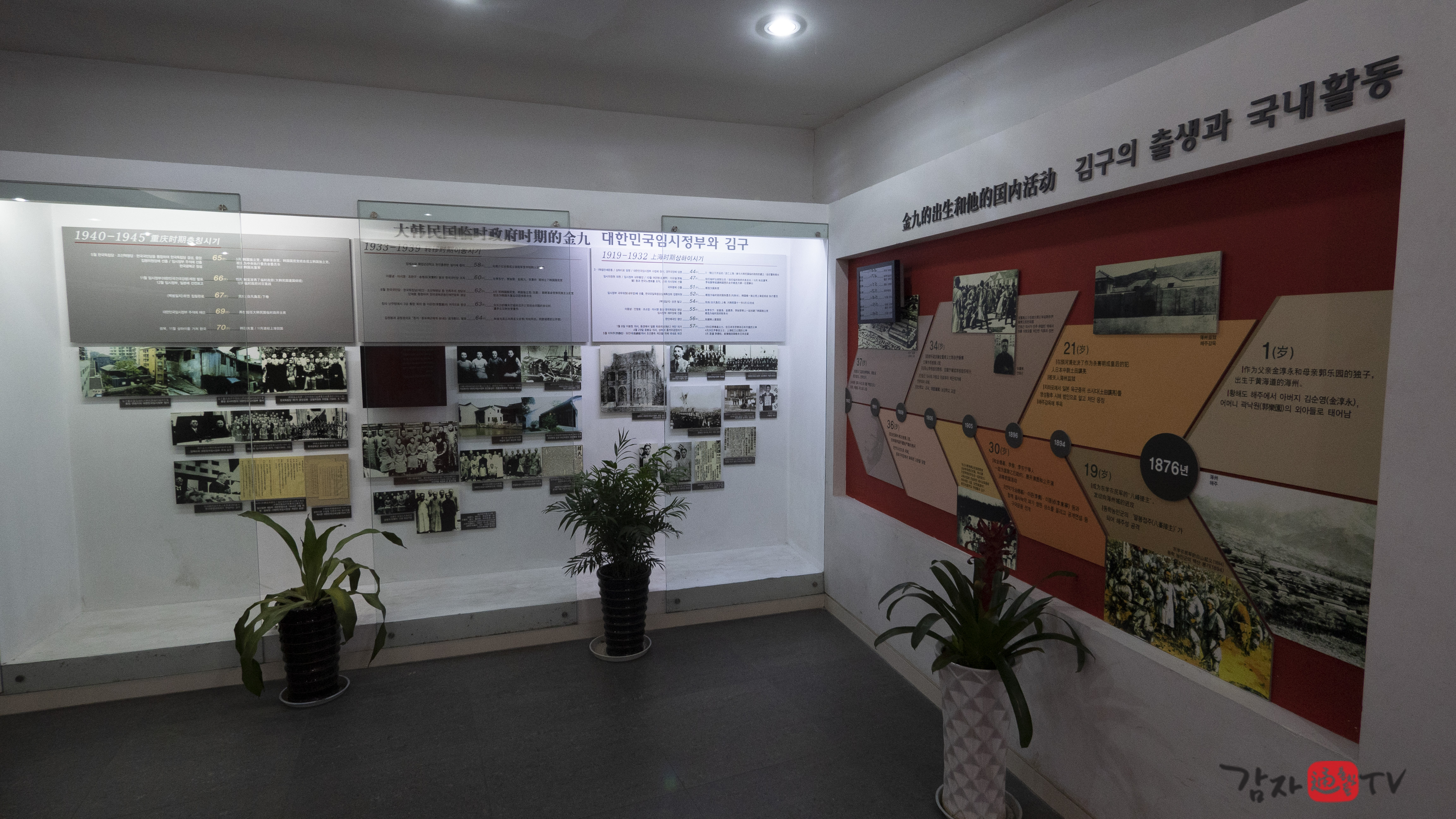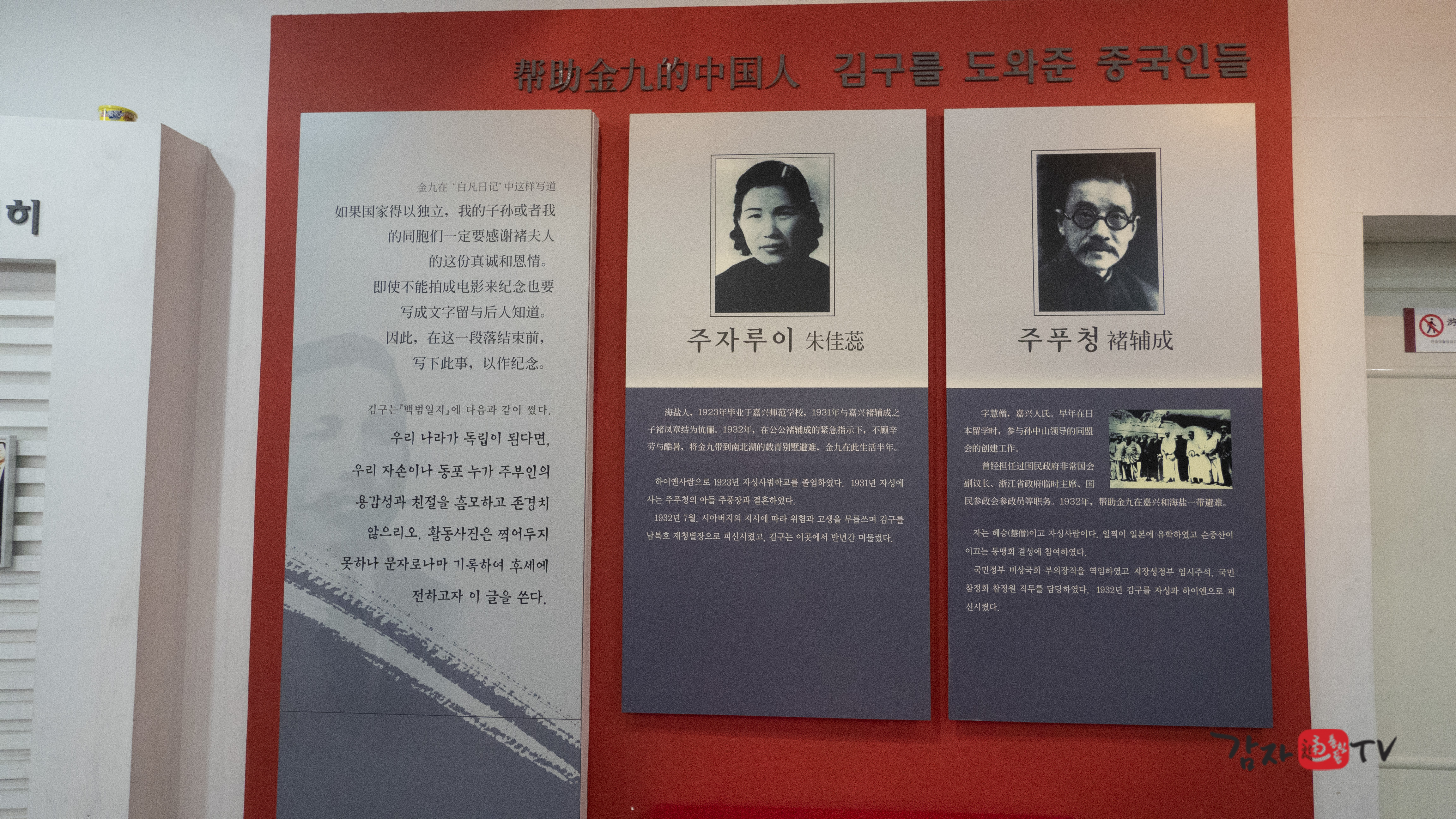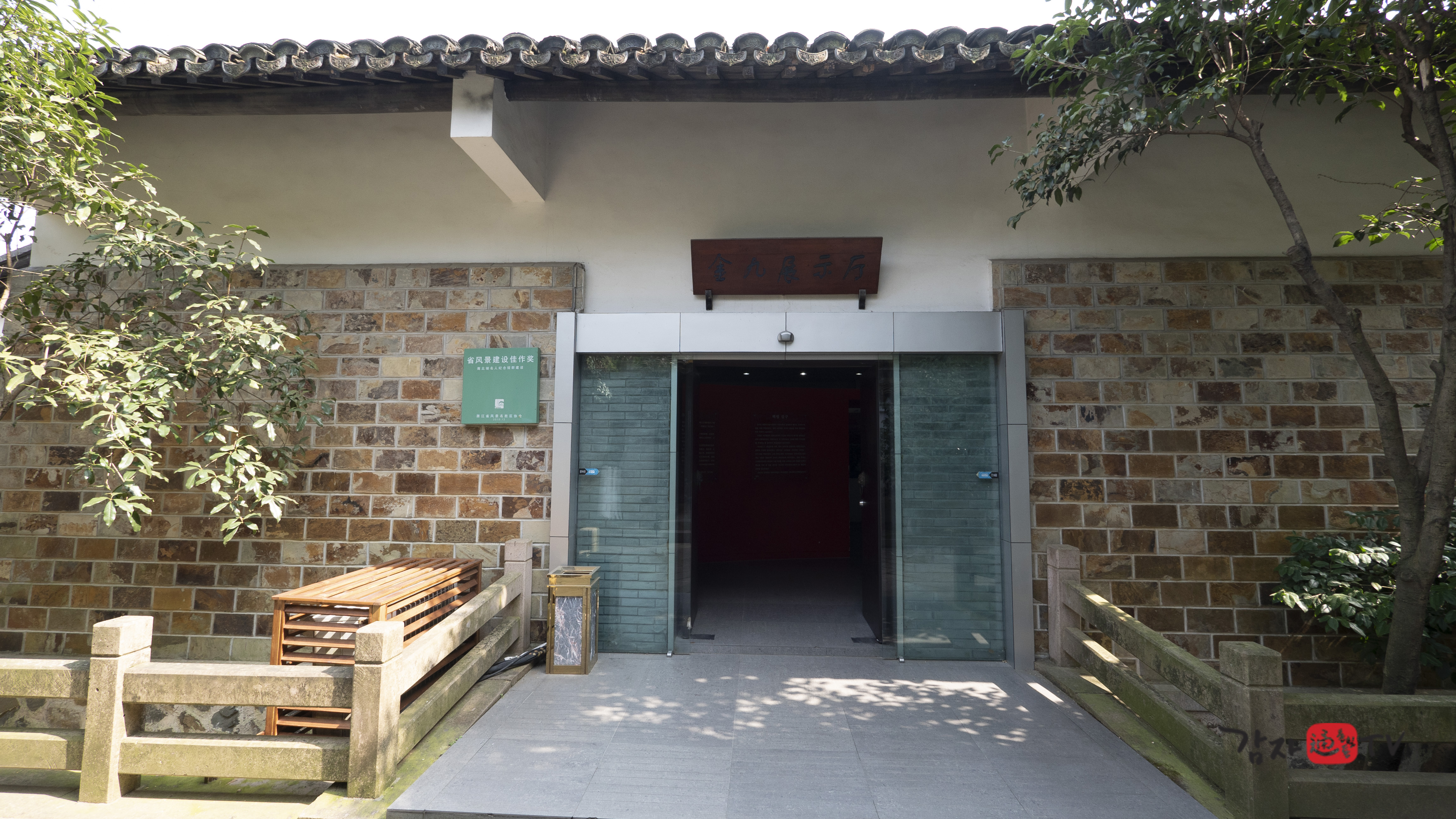 2001년 가을 가흥시는 재청별장 옆에 ‘김구 전시관’을 신축하고, 독립기념관의 지원을 받아 김구 관련 사진 및 문헌 자료들을 전시하였다. 전시관의 총 면적은 120㎡이며, 전시는 ‘김구의 독립운동’, ‘남북호 피난 시기의 생활’, ‘한중우의’라는 세 개의 주제로 구성되어 있다. 입구에는 ‘재청별장 김구피난처 : 김구선생 피난처’라고 중문과 한글로 쓰여진 표지석이 세워져 있다.