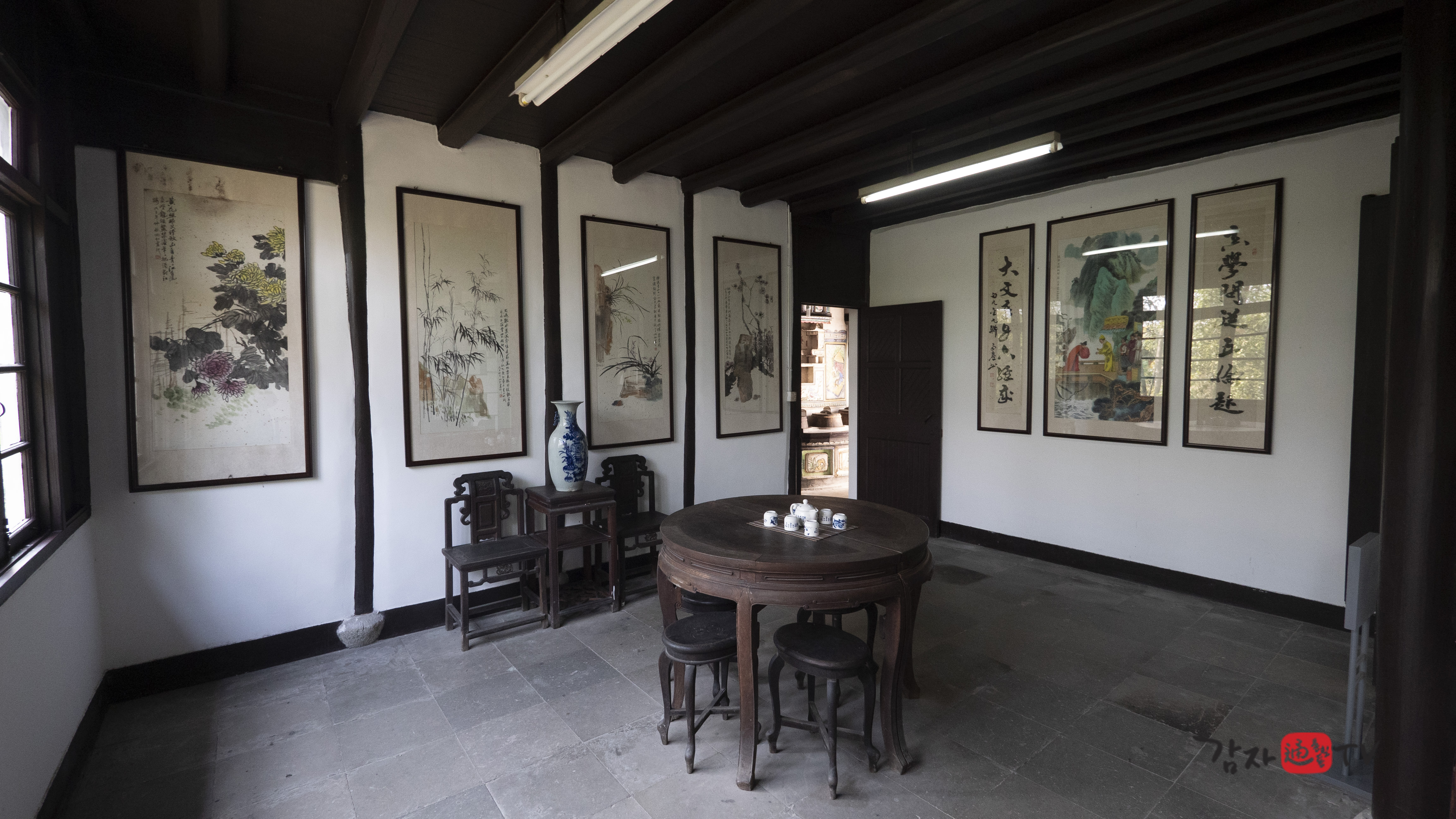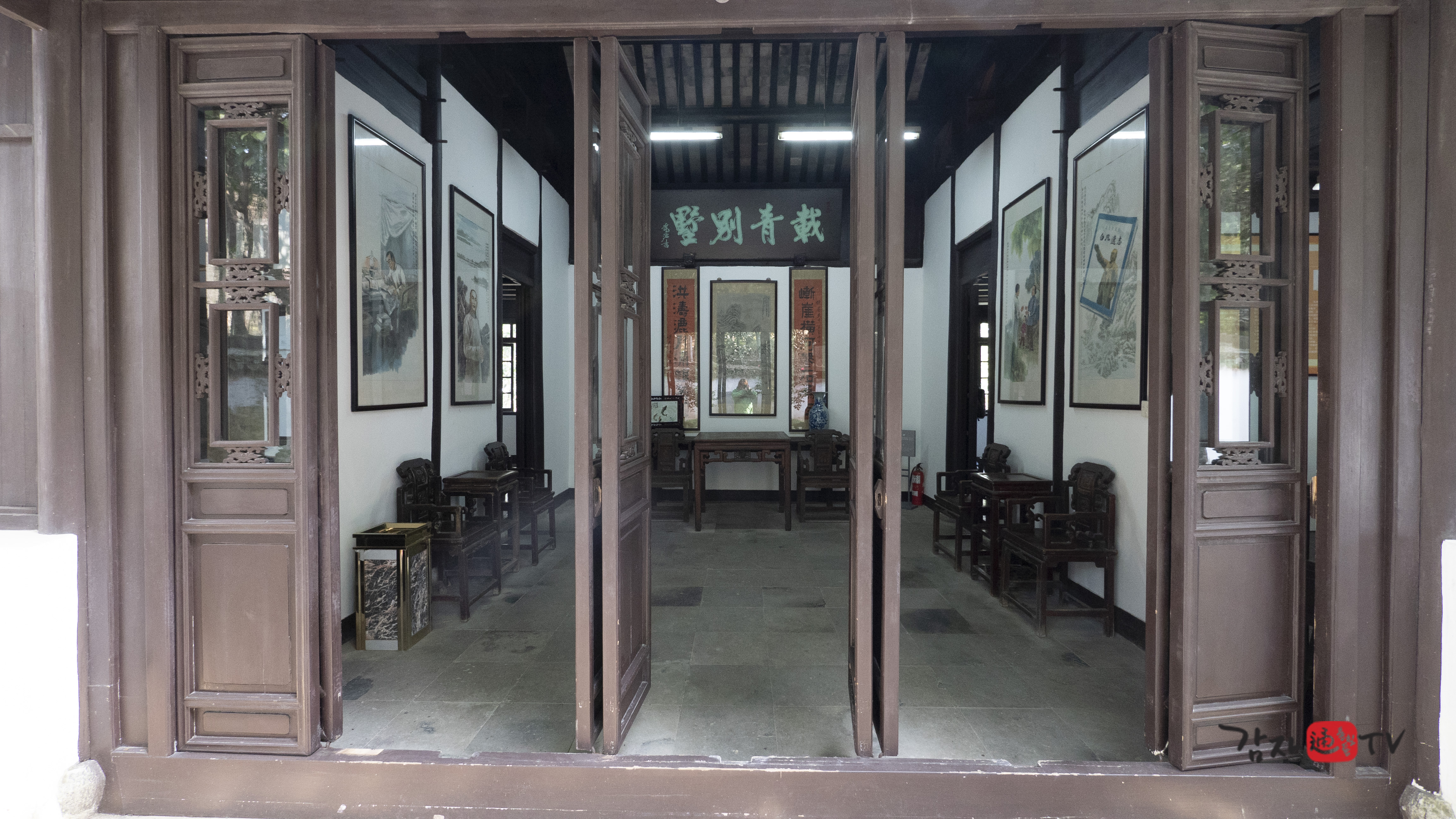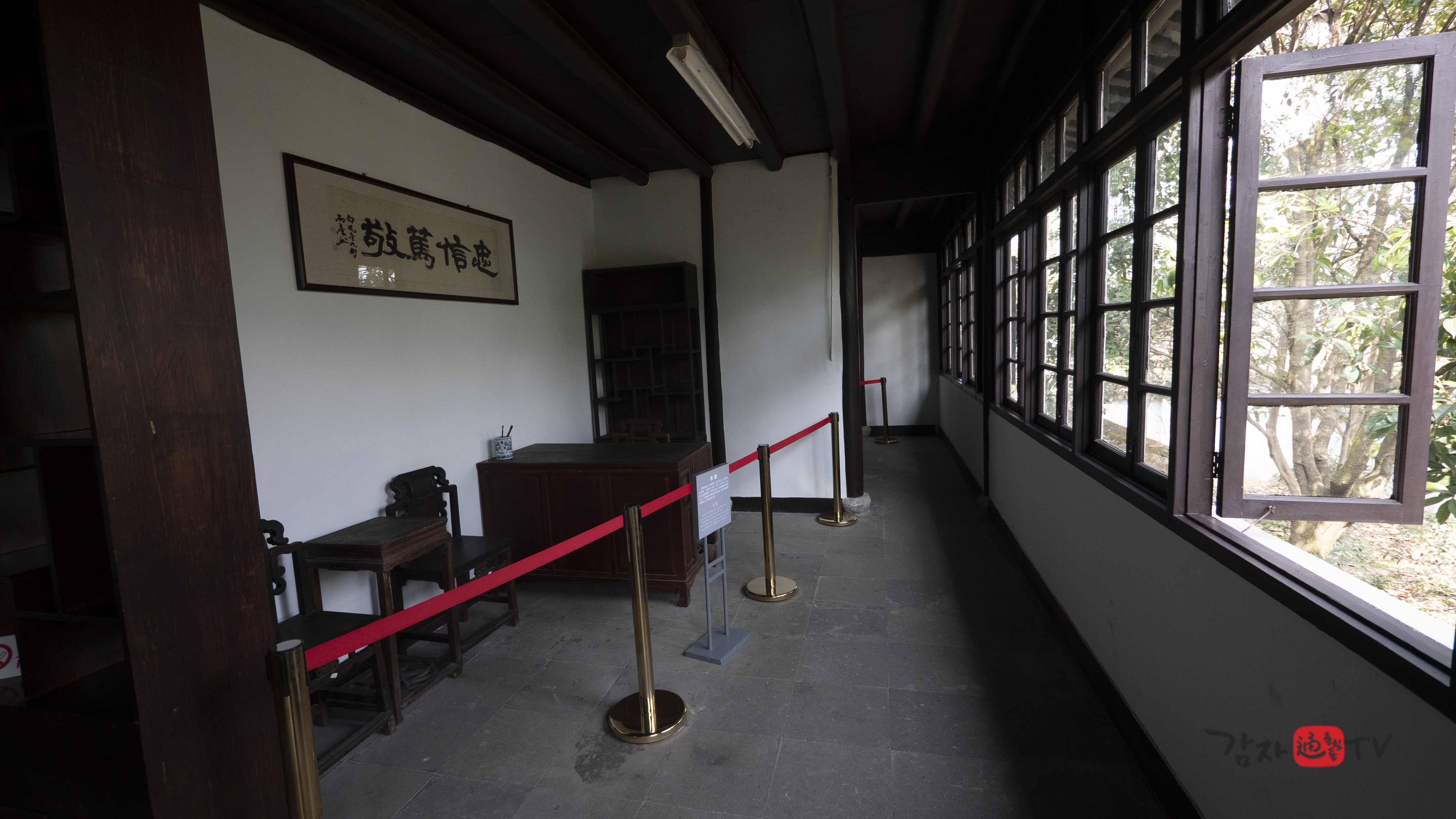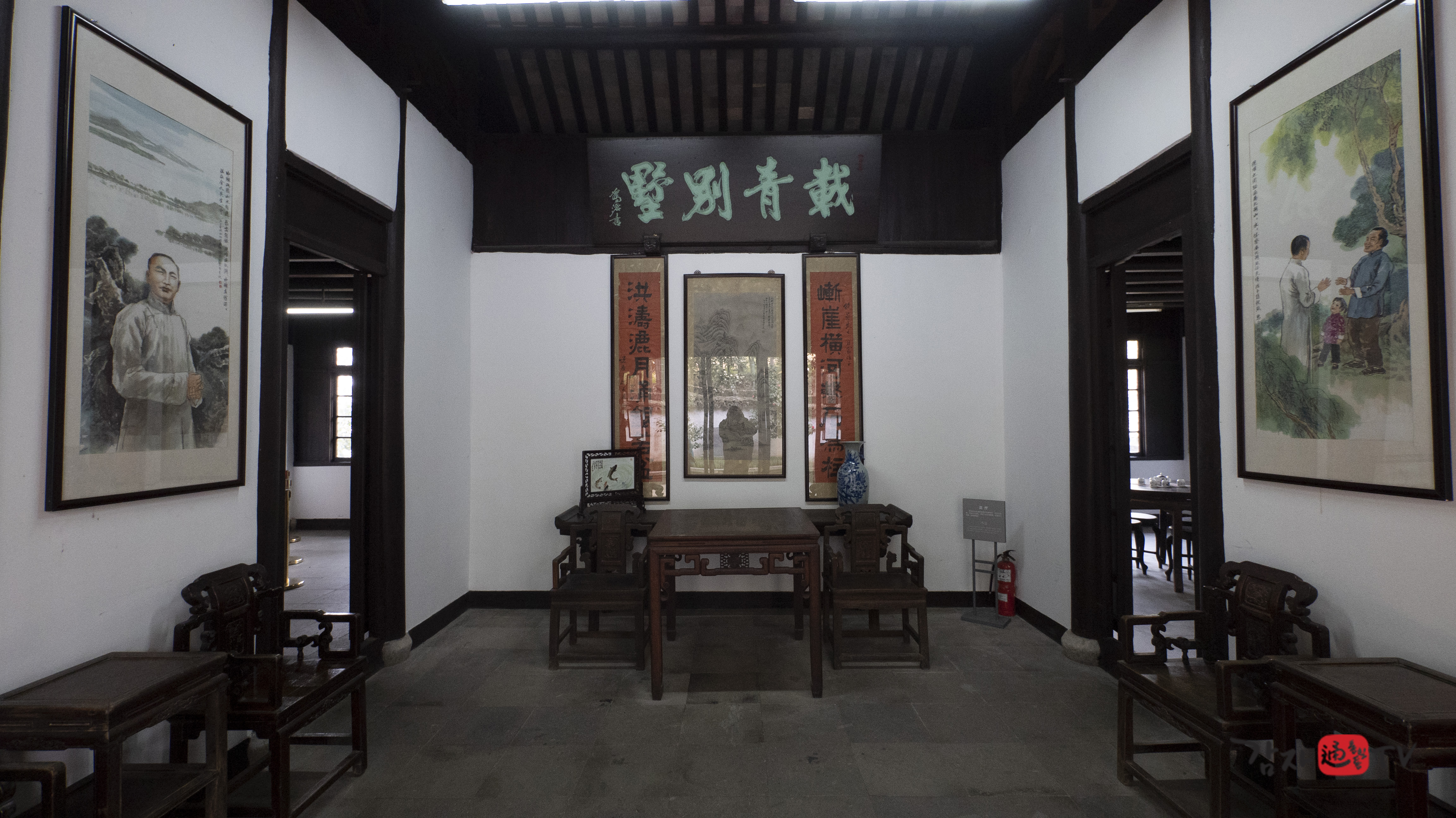 2001년 가을 가흥시는 재청별장 옆에 ‘김구 전시관’을 신축하고, 독립기념관의 지원을 받아 김구 관련 사진 및 문헌 자료들을 전시하였다. 전시관의 총 면적은 120㎡이며, 전시는 ‘김구의 독립운동’, ‘남북호 피난 시기의 생활’, ‘한중우의’라는 세 개의 주제로 구성되어 있다. 입구에는 ‘재청별장 김구피난처 : 김구선생 피난처’라고 중문과 한글로 쓰여진 표지석이 세워져 있다.
