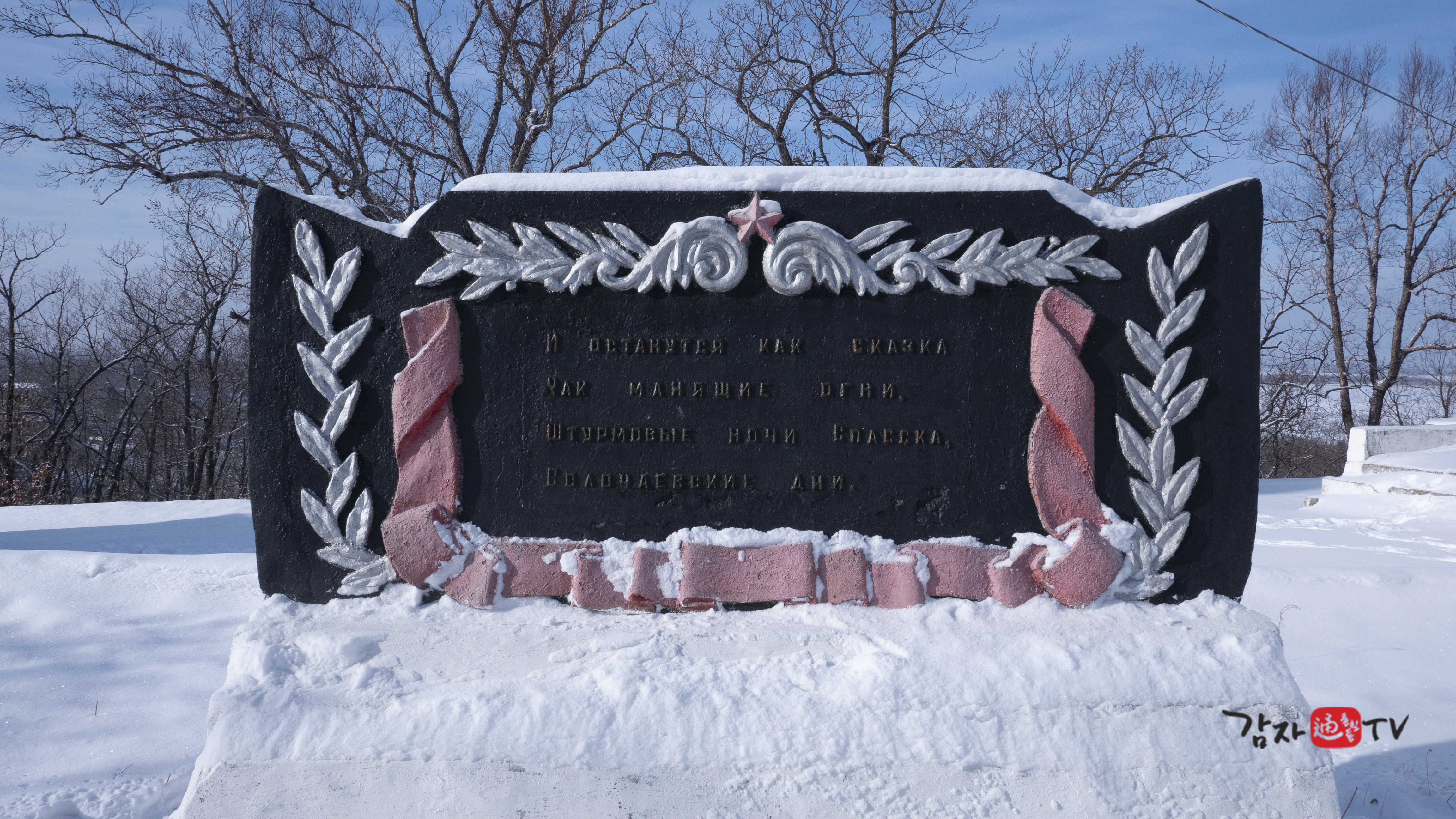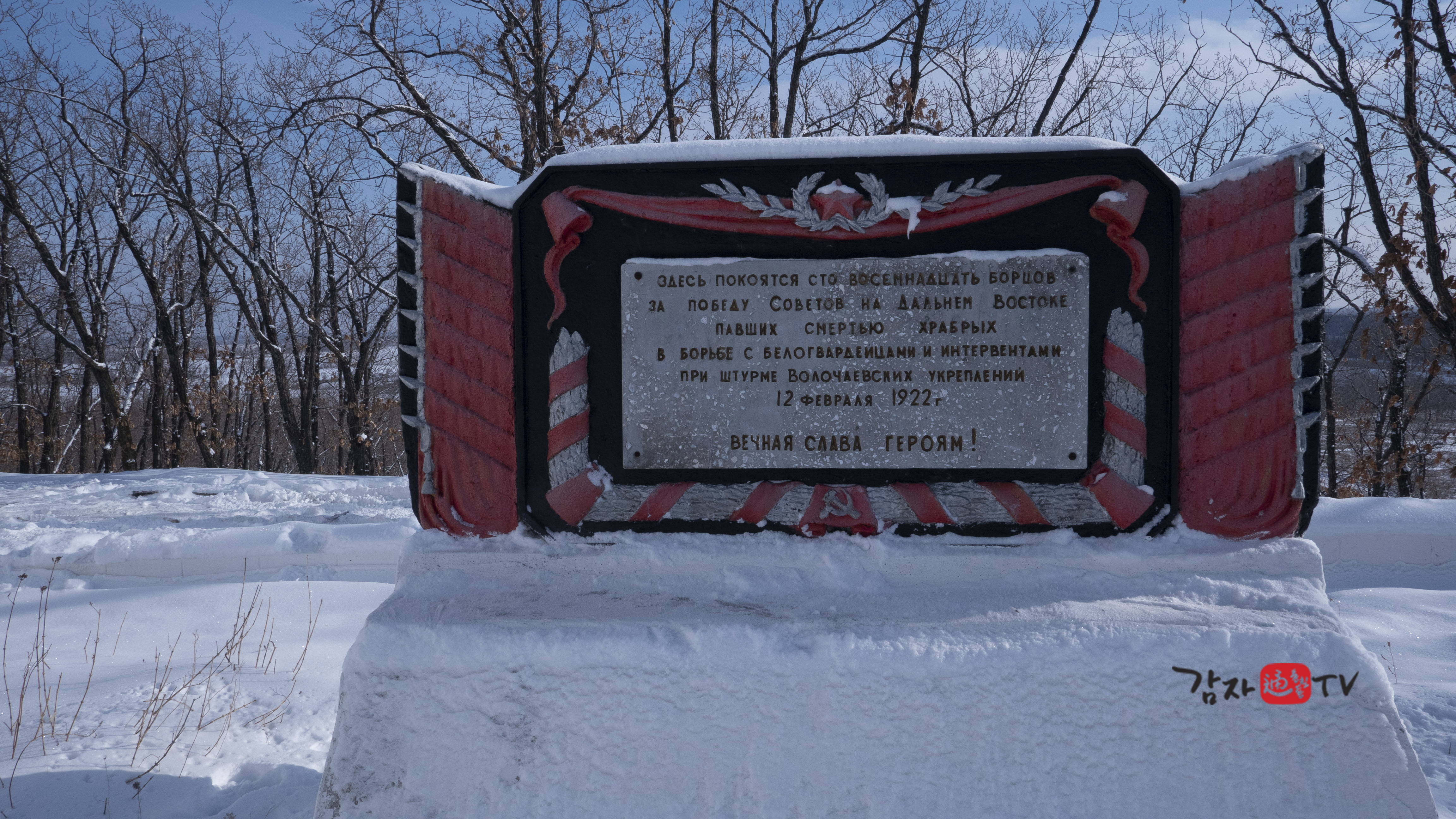 러시아어 비문에는 “극동소비에트 해방을 위해 전사한 118명의 빨치산, 1922년 2월 12일 이곳에 모시다.